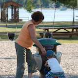 Our visit with Opa - playing soccer in the backyard. It is so beautiful with the Lake right there!